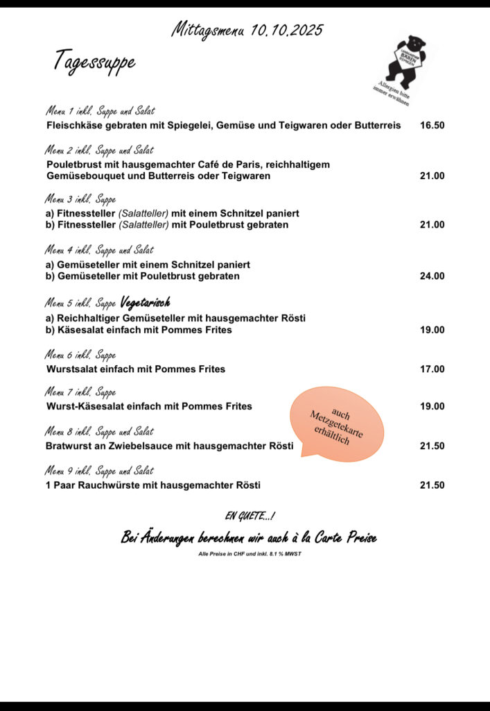 Zur Metzgetekarte Am Dienstag Abend, den 23. September 2024 starten wir mit der Metzgete.Danach täglich von11.00-13.30 Uhr und 18.00-21.30 Uhr2. und 4. Sonntag im Monat ...